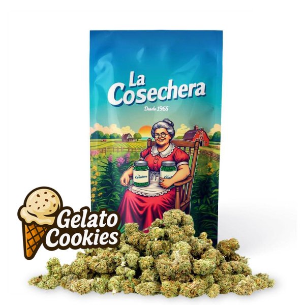 La variedad Gelato Cookies de La Cosechera llega en formato 50 gramos con selección Small Buds: flores compactas, bien curadas y con el perfil aromático que ha convertido a esta genética en una de las más apreciadas.